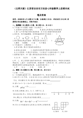 (北师大版)江西省吉安市万安县七年级数学上册期末试卷及答案.doc