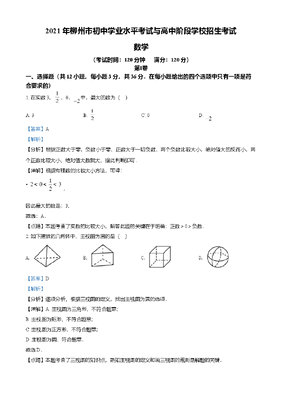 精品解析:广西柳州市2021年中考数学真题试卷(解析版).doc