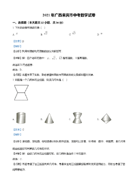 精品解析:广西来宾市2021年中考数学真题(解析版).doc