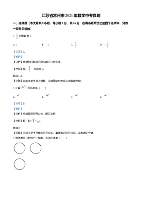 精品解析:江苏省常州市2021年数学中考真题(解析版).doc