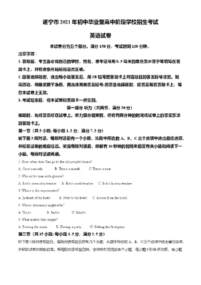 精品解析:四川省遂宁市2021年中考英语试题(原卷版).doc