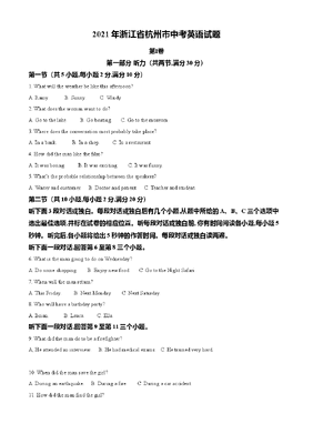 精品解析:浙江省杭州市2021年中考英语试题(解析版).doc