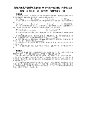 北师大版七年级数学上册第5章《一元一次方程》同步练习及答案—5.3应用一元一次方程:水箱变高了(1).doc