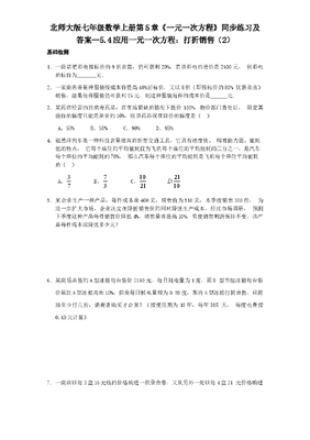 北师大版七年级数学上册第5章《一元一次方程》同步练习及答案—5.4应用一元一次方程:打折销售(2).doc