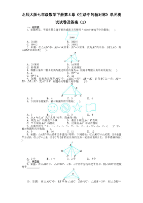 北师大版七年级数学下册第5章《生活中的轴对称》单元测试试卷及答案(1)(初中数学7年级下册).doc