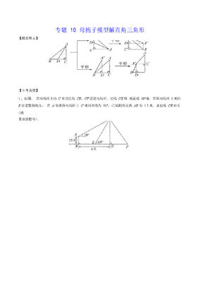 初中数学专题10 母抱子模型解直角三角形(学生版).docx