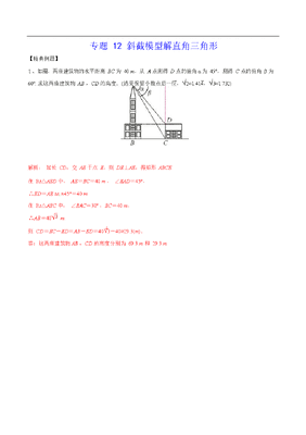 初中数学专题12 斜截模型解直角三角形(教师版).docx