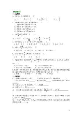 初中7年级(上册)一元一次方程的解法(基础)巩固练习.doc