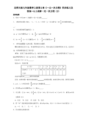 北师大版七年级数学上册第5章《一元一次方程》同步练习及答案—5.2求解一元一次方程(2).doc