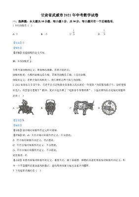 精品解析:甘肃省武威市、定西市、平凉市、酒泉市、庆阳市2021年中考数学试卷(解析版).doc