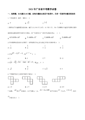 精品解析:广东省2021年中考真题数学试卷(原卷版).doc