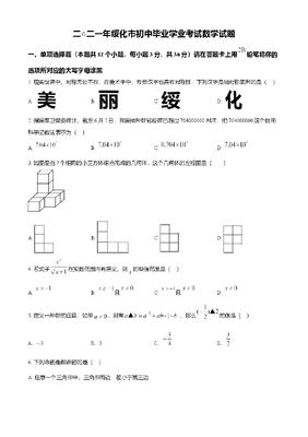 精品解析:黑龙江省绥化市2021年中考数学真题试卷(原卷版).doc