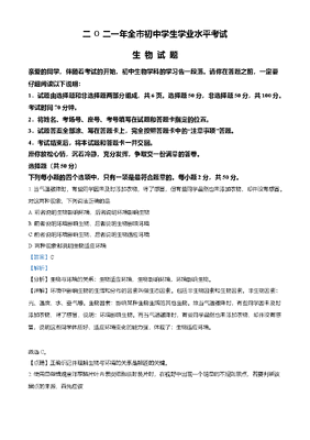 精品解析:山东省聊城市2021年中考生物试题(解析版).doc