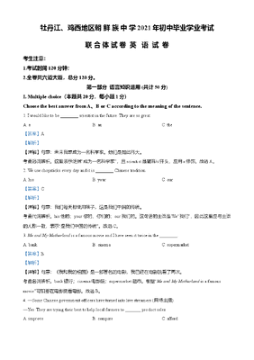精品解析:黑龙江省牡丹江、鸡西地区朝鲜族学校2021年中考英语试题(解析版).doc