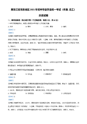 精品解析:2021年黑龙省龙东地区(农垦·森工)中考历史试题(解析版).doc