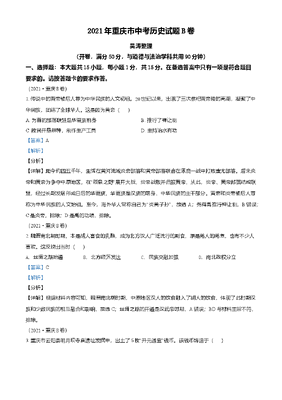 精品解析:2021年重庆市中考历史试题B卷(解析版).doc