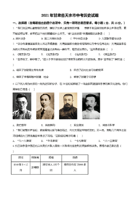 精品解析:2021年甘肃省天水市中考历史试题(原卷版).doc