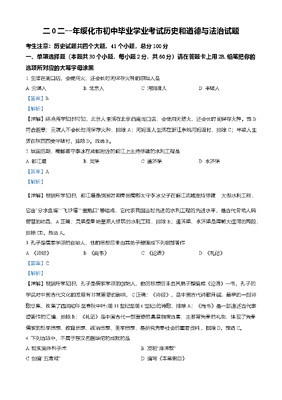精品解析:2021年黑龙江省绥化市中考历史试题(解析版).doc
