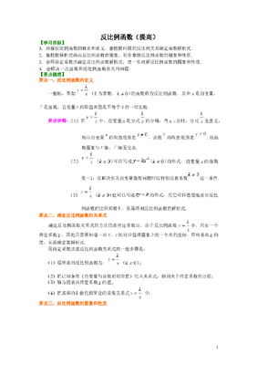 初中数学9年级反比例函数(提高)知识讲解.doc