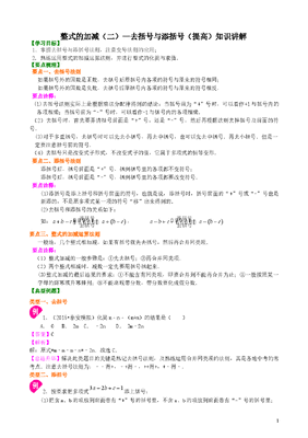 初中7年级(上册)整式的加减(二)—去括号与添括号(提高)知识讲解.doc
