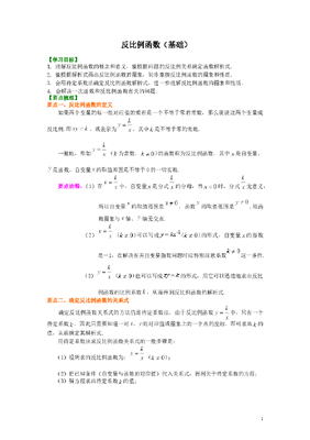 初中数学9年级反比例函数(基础)知识讲解.doc