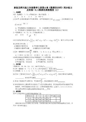 新版北师大版八年级数学上册第6章《数据的分析》同步练习及答案—6.4数据的离散程度(1).doc