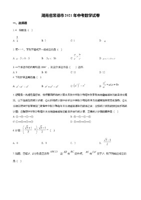 精品解析:湖南省常德市2021年中考数学试卷(原卷版).doc