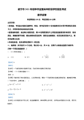 精品解析:四川省遂宁市2021年中考数学真题(解析版).doc