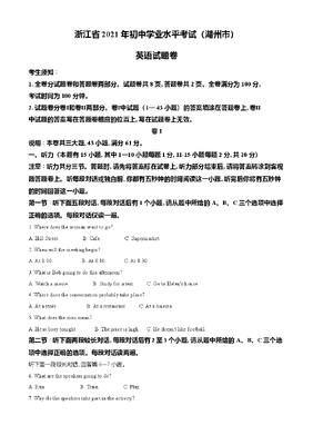 精品解析:浙江省湖州市2021年中考英语试题(原卷版).doc