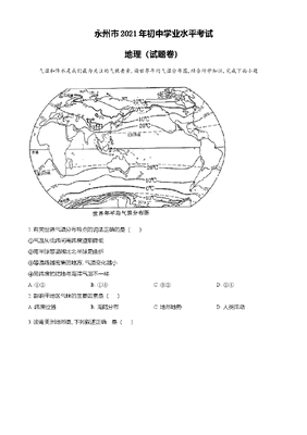 精品解析:湖南永州市2021年中考地理真题(原卷版).doc
