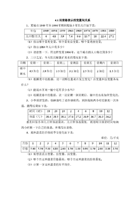 《用表格表示的变量间关系》基础训练(初中数学7年级下册).doc