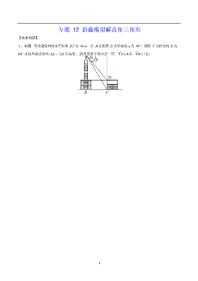 初中数学专题12 斜截模型解直角三角形(学生版).docx
