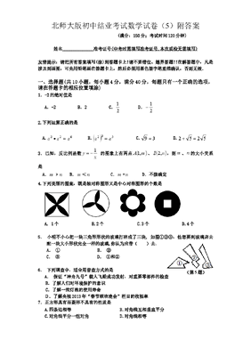 北师大版初中结业考试数学试卷(5)附答案.doc