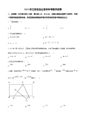 精品解析:江苏省连云港市2021年中考数学真题(原卷版).doc