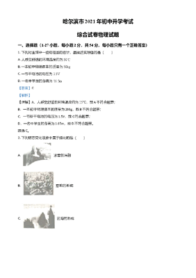 精品解析:2021年黑龙江省哈尔滨市中考理综物理试题(解析版).doc