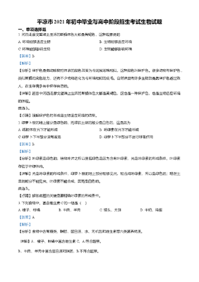 精品解析:甘肃省平凉市2021年中考生物试题(解析版).doc