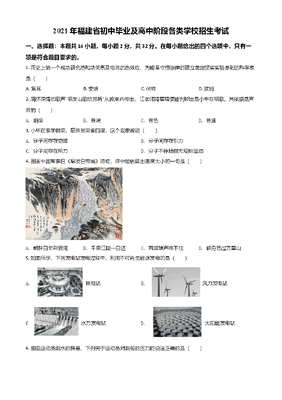 精品解析:2021年福建省中考物理试题(原卷版).doc