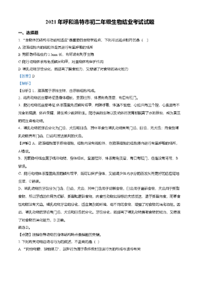 精品解析:内蒙古呼和浩特市2021年会考生物试题(解析版).doc