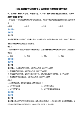 精品解析:2021年福建省中考物理试题(解析版).doc