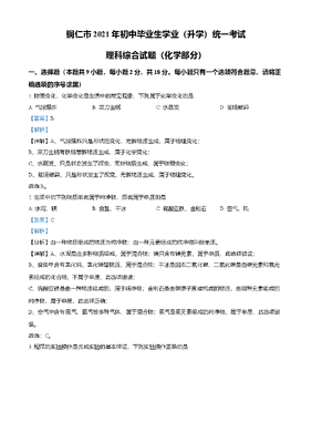 精品解析:贵州省铜仁市2021年中考化学试题(解析版).doc