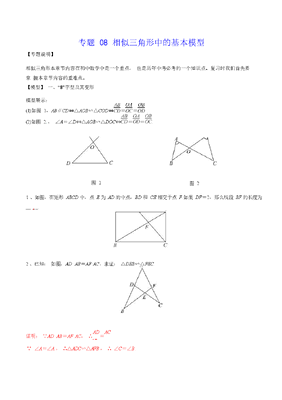 初中数学专题08 相似三角形中的基本模型(教师版).docx