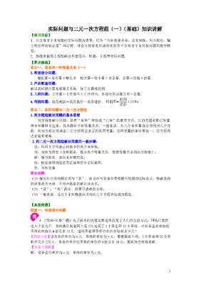 初中7年级(下册)实际问题与二元一次方程组(一)(基础)知识讲解.doc