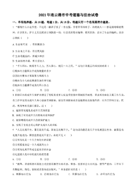 精品解析:2021年江苏省连云港市中考道德与法治试题(原卷版).doc