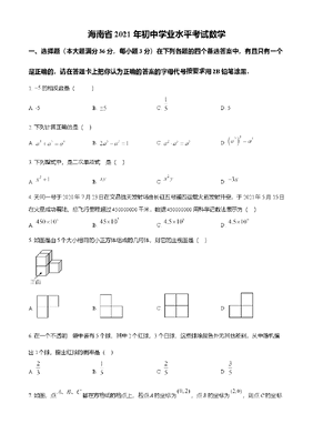 精品解析:海南省2021年中考数学真题试卷(原卷版).doc