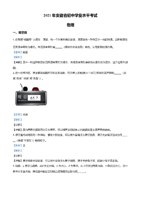 精品解析:2021年安徽省初中学业水平考试物理试题(解析版).doc