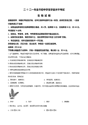 精品解析:甘肃省平凉市2021年中考生物试题(原卷版).doc