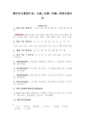 期中作文素材汇总(人物、风景、比喻、词语分类大全).doc