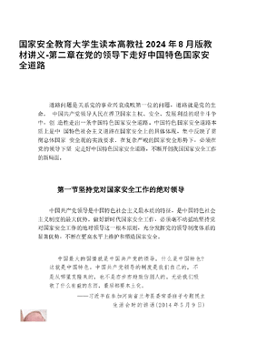 国家安全教育大学生读本高教社2024年8月版教材讲义-第二章在党的领导下走好中国特色 国家安全道路.docx