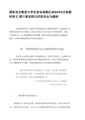 国家安全教育大学生读本高教2024版电子版教材第六章坚持以经济安全为基础.docx