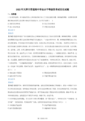 精品解析:2022年新高考天津卷历史真题(解析版).docx
